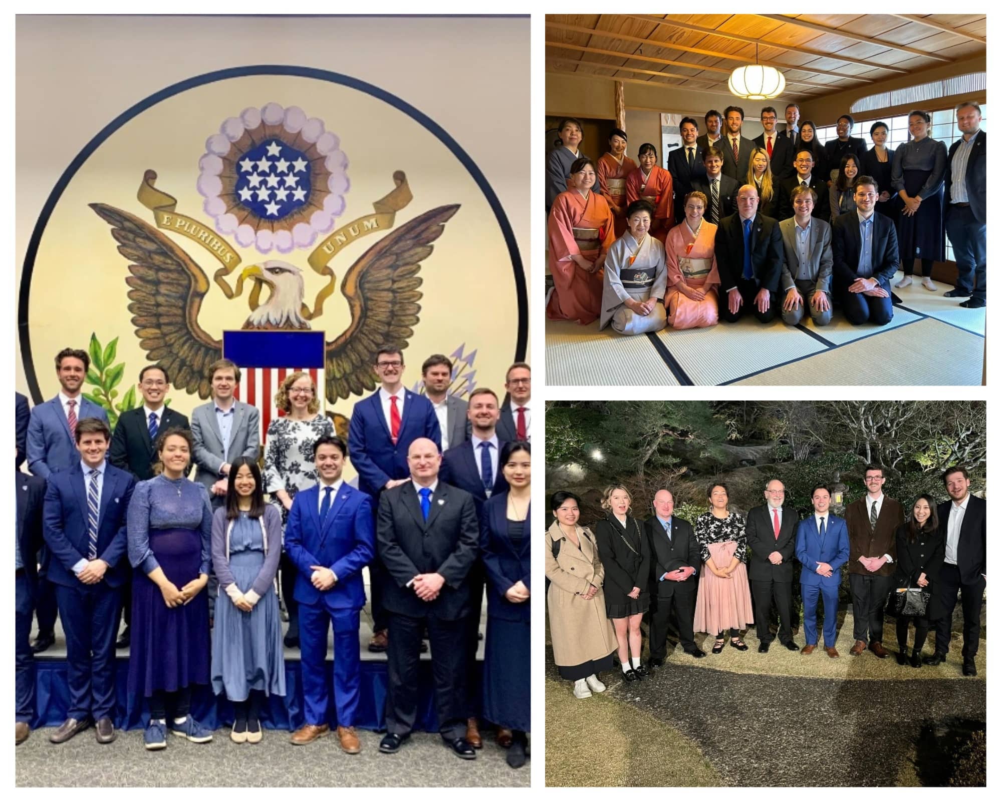 Caption 1: Briefing at U.S. Embassy, Tokyo | Caption 2: Tea Ceremony | Caption 3: Garden at the International House of Japan
